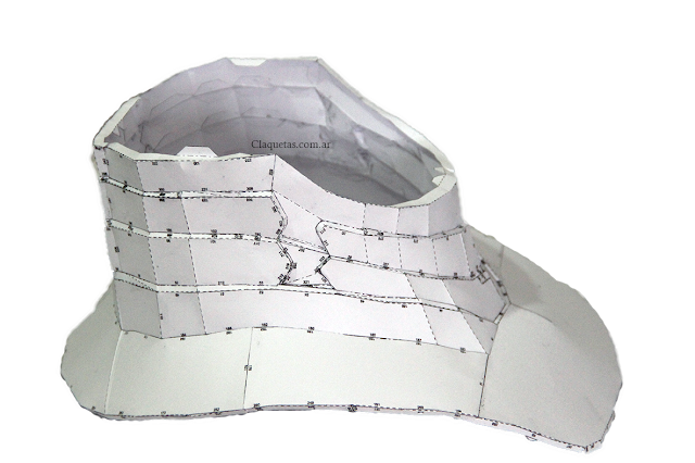 Este casco no es una copia exacta al de la película, o tampoco está en los archivos de descarga. Simplemente lo hice porque quería probar de hacer un casco que fuera anatómicamente un poco más correcto. El problema que encuentro con el archivo original es que haciéndolo a medida sigue quedando desproporcionado, y este modelo, aunque no es una copia exacta al de la película, no queda gigante en relación con el traje. De todas maneras analizaré la posibilidad de volver a hacer el casco como el de la película, más adelante.