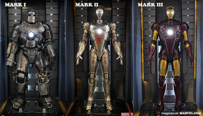 Hay muchos modelos de este traje, tenemos desde el Mark 1,2 y 3 que aparecen en la primer película, hasta el Mark 42 que aparece en la última película (y hay más), lo que tendremos que hacer es saber cuál es el que queremos construir y tomar una decisión.
