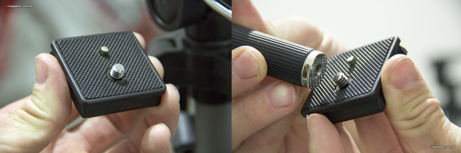 Si bien existen dos modelos con bluetooth, (uno trae un disparador interno y el otro un disparador externo), vamos a utilizar el que trae el disparador externo porque este modelo trae en la parte de abajo la rosca universal de 1/4 pulgada de diámetro para el acoplamiento de rotulas o trípodes.