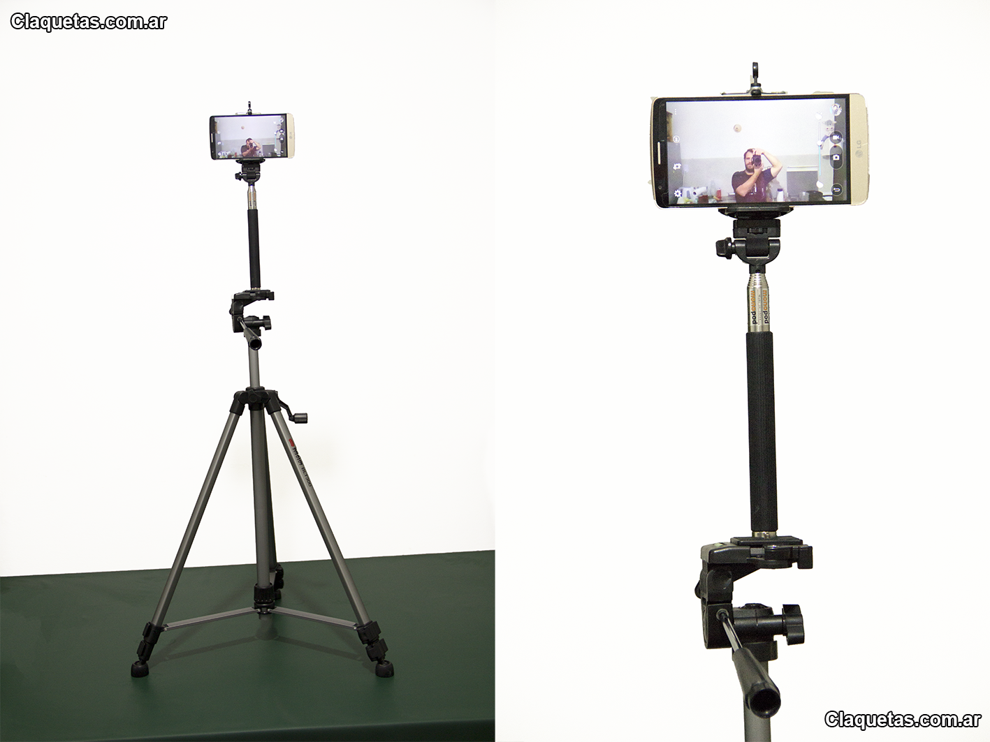 Creo que lo más obvio sería atornillar el palito selfie al trípode no? es lo primero que se viene a la mente mirando estas imágenes. Si hacemos eso podríamos tener un soporte para filmar con nuestro celular, hacer panorámicas horizontales y verticales de forma fluida. Aunque, si fuera para eso, no haría falta el tubo extensible si no que podríamos usar solamente la parte que sujeta el teléfono, ya que tiene la misma rosca universal. Pero por cuestiones prácticas ajustemos todo el palito selfie así también podemos extenderlo en altura.