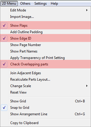 - Seleccionar “Show Edge Id” y “Check Overlapping Parts” (en menú 2D)