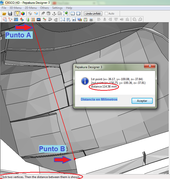Con esta herramienta seleccionada vamos a ir al gráfico 3D y vamos a poder tomar las distancias entre dos puntos dentro del grafico.