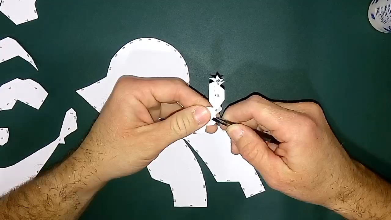 A partir de este punto vamos a unir todas las partes que tengan el mismo número. En algunas ocasiones vamos a tener que ayudarnos del programa pepakura para identificar algunas partes porque los números están tan cerca que son ilegibles.