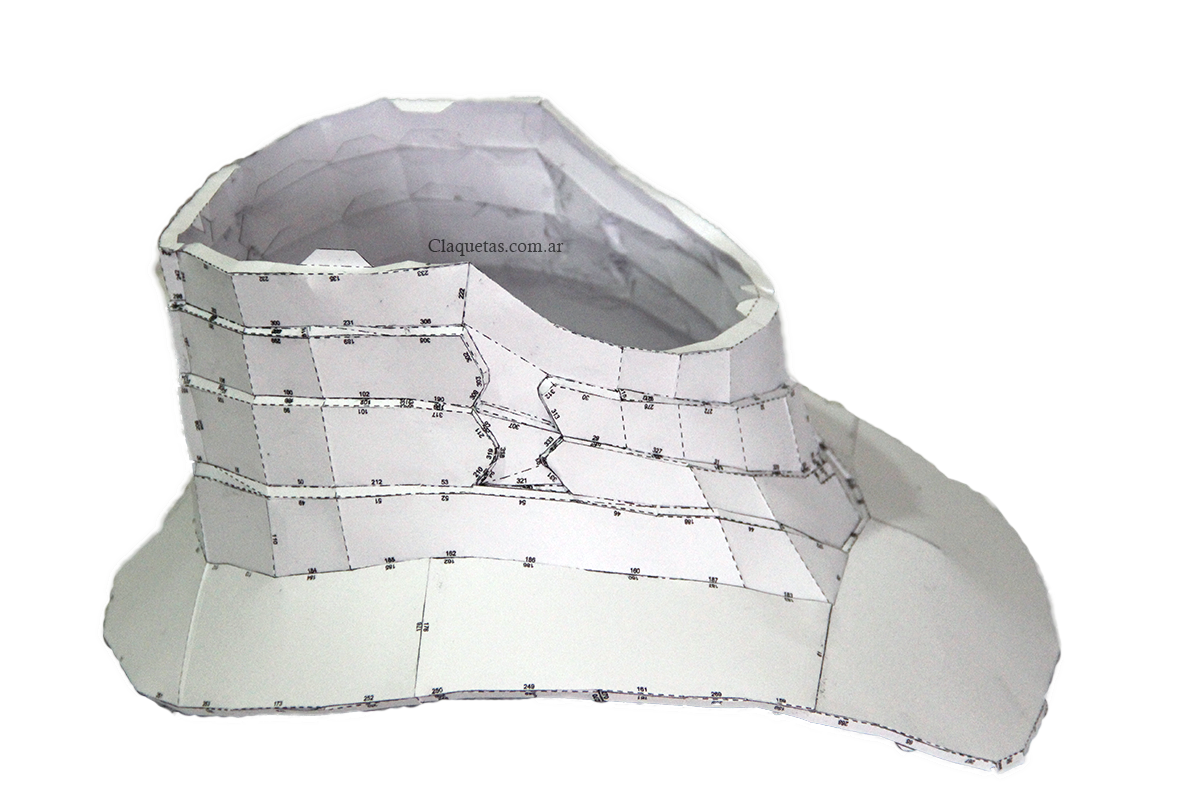 Este casco no es una copia exacta al de la película, o tampoco está en los archivos de descarga. Simplemente lo hice porque quería probar de hacer un casco que fuera anatómicamente un poco más correcto. El problema que encuentro con el archivo original es que haciéndolo a medida sigue quedando desproporcionado, y este modelo, aunque no es una copia exacta al de la película, no queda gigante en relación con el traje. De todas maneras analizaré la posibilidad de volver a hacer el casco como el de la película, más adelante.